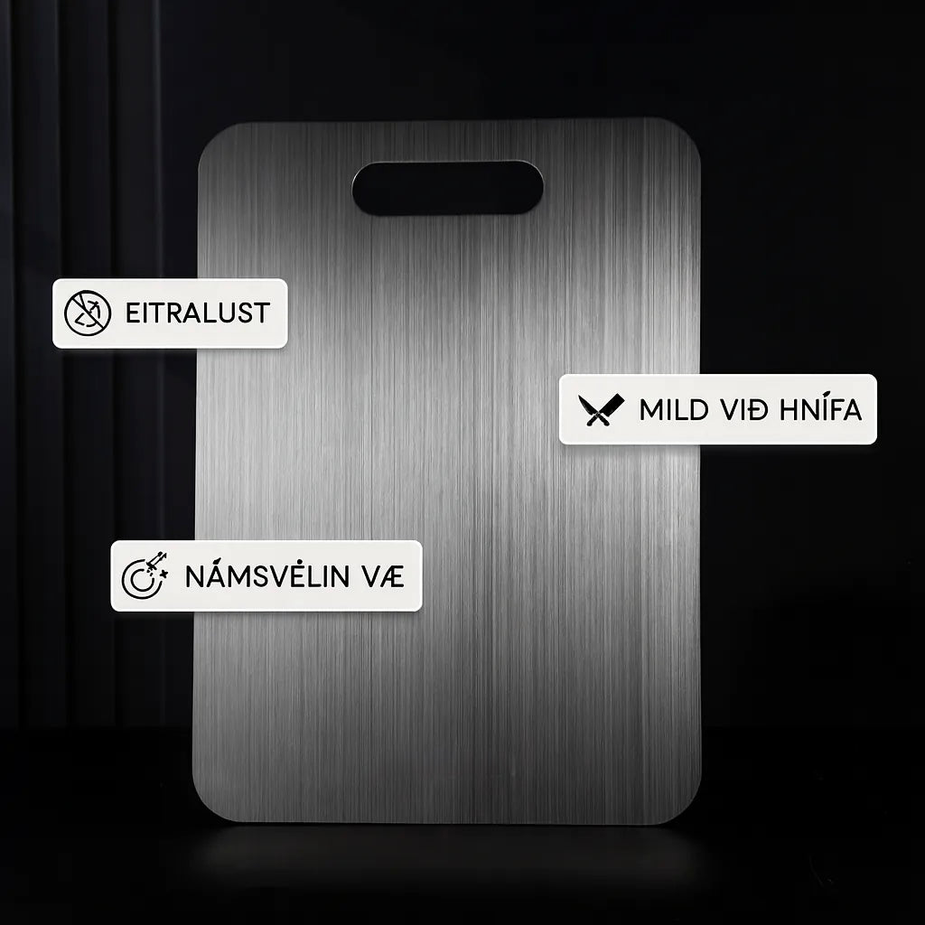 Jafnvel verstu blettirnir, eins og ber og rauðrófur, festast ekki við títaníum. Ein snögg skolun hreinsar það betur en nokkrar mínútur af þvotti á skurðarbretti úr tré.